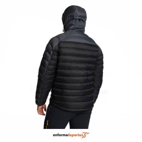Chaqueta técnica hombre TRANGO LUGO V02, confeccionada con tejido de poliéster Downproof Recycled Nylon y rellena con plumón de pato reciclado de origen europeo (700 cuins), ofrece una excelente capacidad térmica con un volumen comprimible ideal para llevar en la mochila. Su capucha fija con doble ceñidor facial y de volumen, junto con el bajo ajustable, garantizan protección y confort en condiciones exigentes. Los múltiples bolsillos —pectorales, ventrales, interiores y de recogida— permiten organizar el equipo con facilidad. Además, incorpora tratamiento de repelencia al agua libre de PFC