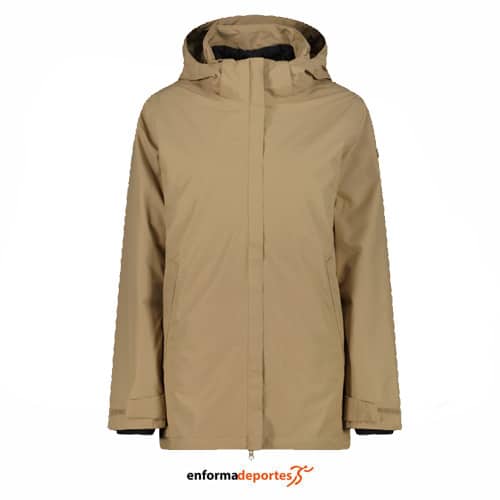 Chaqueta mujer CAMPAGNOLO LONG ZIP HOOD DETACHABLE INN, con interior y capucha desmontables; capa exterior con membrana impermeable y transpirable y costuras totalmente selladas, bloquea el viento y la lluvia; con capa interior desmontable con aislamiento con tecnología Feel Warm Flat que garantiza un calor uniforme con un grosor reducido. Sistema Clima Protect, integrado entre los tejidos, potencia el aislamiento térmico y la gestión de la humedad, ofreciendo una comodidad constante, costuras selladas, cierre con cremallera completa y bolsillos laterales.