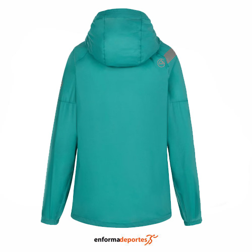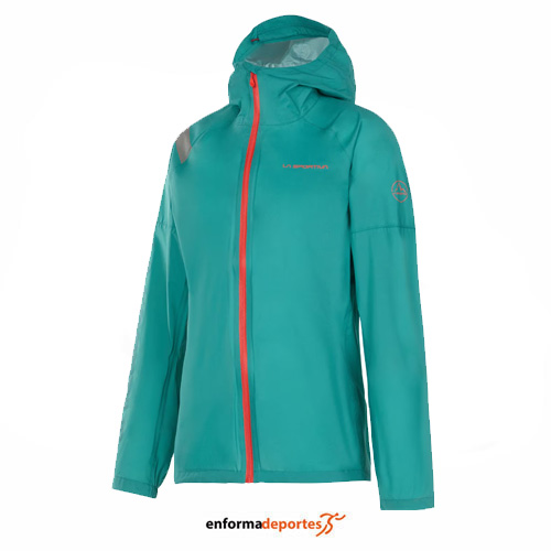 Chaqueta mujer LA SPORTIVA POCKETSHELL, ligera y garantiza protección en todo tipo de climas para seguir corriendo bajo la lluvia y en medio del viento, es plegable, impermeable y cuenta con una capucha articulada y ajustable que sigue perfectamente tus movimientos, con cierre con cremallera completo y bolsillos laterales.