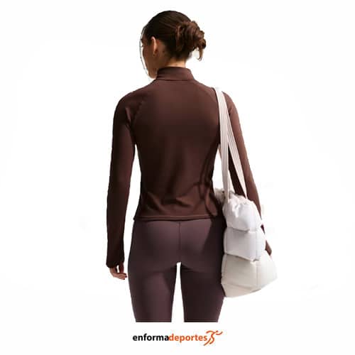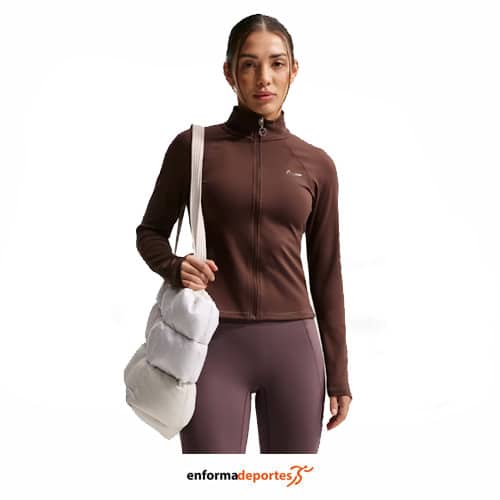 Chaqueta mujer NIKE LONG-SLEEVE FITRTED, de corte elástico y ceñido, confeccionada en tejido con capilarización del sudor ofrece un acabado aterciopelado para una suavidad extra; con cuello alto y la cremallera completa.