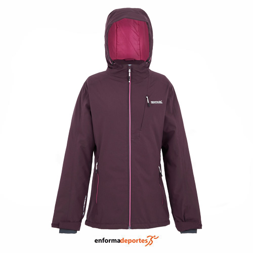 Chaqueta mujer REGATTA HIGHTON STRETCH IV, acolchada, confeccionada con tejido elástico Isotex 15000 impermeable y transpirable (índice de transpirabilidad 15.000 g/m²/24 horas) que garantiza una protección y una agilidad óptimas, con aislamiento Thermoguard (fibra sintética), de peso medio y el acabado repelente al agua duradero ofrecen calidez y resistencia adicional, con costuras selladas, los paneles de forro con deflectores y una capucha ampliada con ajustadores, con cremallera central delantera, con 2 bolsillos inferiores con cremallera y 1 bolsillo con cremallera en el pecho, bolsillo interior de seguridad con cremallera.