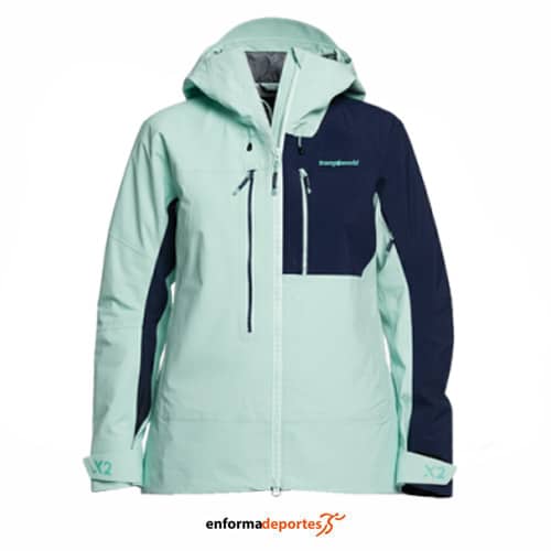 Chaqueta mujer TRANGO TRX2 SHELL EVO, confeccionada con tejido de Gore-Tex® Pro 3L, garantiza una impermeabilidad excepcional (columna de agua de 28.000 mm) y una transpirabilidad óptima, lo que permite mantener el cuerpo seco incluso durante ascensos intensos o cambios bruscos de ritmo, con capucha fija, compatible con casco, incorpora visera semirrígida y doble ceñidor para un ajuste seguro y estable en condiciones de viento o nieve, cremalleras impermeables que protegen el interior frente a la humedad, mientras que las mangas conformadas y la ventilación en axilas con doble carro ofrecen libertad de movimiento y regulación térmica personalizada, faldón para-nieve desmontable y el ceñidor elástico en el bajo refuerzan el aislamiento en entornos nevados. Prenda de alta gama que destaca por su durabilidad, precisión en el ajuste y rendimiento fiable en los entornos más exigentes. Una inversión pensada para quienes no dejan nada al azar en la montaña.