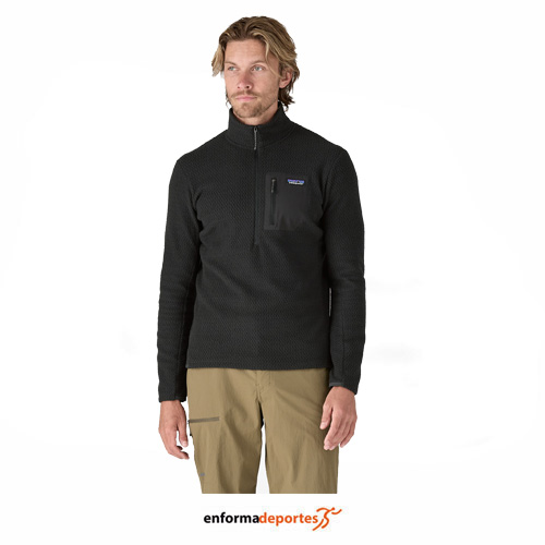 Polar hombre PATAGONIA R1 AIR ZIP NECK, confeccionado en tejido polar técnico, ligero y transpirable, con vellón jacquard de poliéster 100 % reciclado con hilos de núcleo hueco presenta una textura en zigzag única que absorbe la humedad, se seca rápido y es altamente transpirable para actividades de alto rendimiento, con costuras de hombros desplazadas, con bolsillo interior en el pecho izquierdo para guardar fácilmente artículos pequeños; con puños y dobladillo con tejido elástico para mayor ajuste, con media cremallera para mayor ventilación.