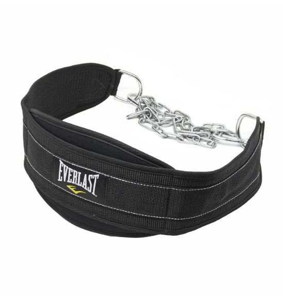 Cinturón para dominadas construido de polipropileno duradero con ojales de acero resistente para asegurar la cadena al cinturón.