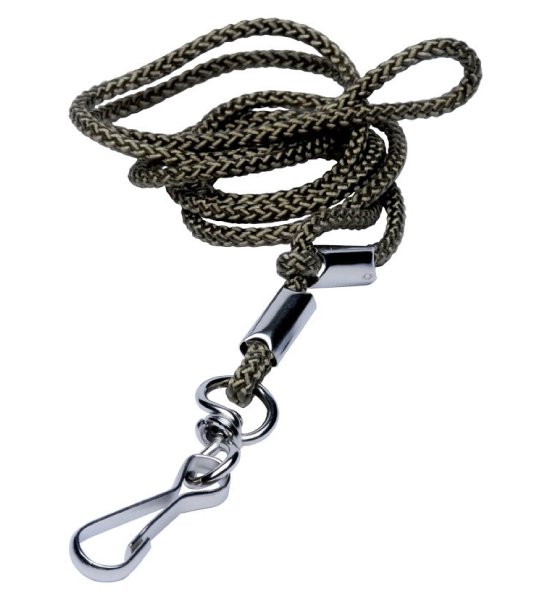 Cordón para silbato provisto de mosquetón metálico. Material: poliéster. Se vende por unidad.