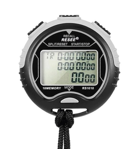 Almacena hasta 120 registros de tiempo, con precisión de medición de 1/100 de segundo.