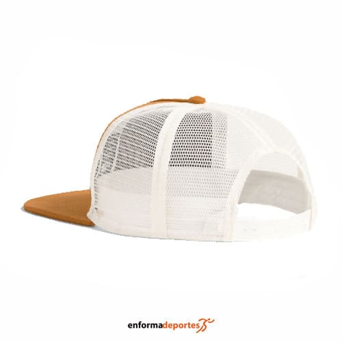 Gorra THE NORTH FACE HALF DOME TRUCKER, con panel frontal estructuradoy tela de ala hechos con 100% algodón; tela de panel posterior de malla hecha con 100% poliéster reciclado; banda de sudor hecha con 80% poliéster reciclado, con ala plana, cierre ajustable a presión de marca fabricado con plástico reciclado y parche de logotipo de cuero en el centro del frente.