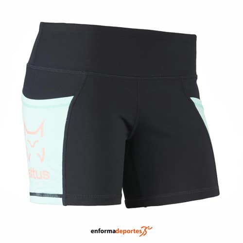 Malla corta mujer ALTUS KELL, confeccionado en tejido poliester y elastano, de corte ajustado, con costuras planas para elevar la comodidad, con cintura efecto vientre plano, de compresión media, con bolsillo en laterales.