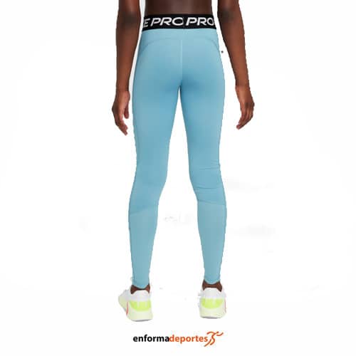 Malla mujer NIKE PRO LEGGINS confeccionadas con tecnología Nike Dri-FIT que capilariza el sudor de la piel para mantener la transpirabilidad y la comodidad, tejido suave y elástico, con cintura elástica y de ajuste ceñido, se adapta al cuerpo.