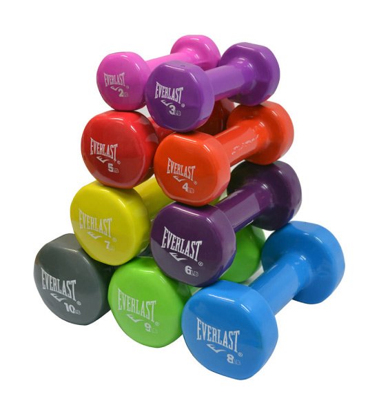 Mancuernas de hierro con peso ponderado, recubiertas en vinyl. Pesos disponibles: 2, 3, 4, 5, 6, 7, 8, 9 y 10 lb.