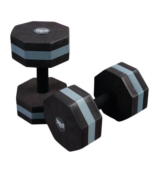 2 mancuernas fabricadas con EVA de alta densidad de primera calidad, las mancuernas son resistentes al cloro y se secan rápidamente.