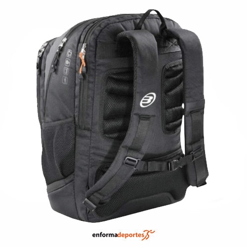 Mochila técnica BULLPADEL HACK, dispone de un compartimento principal, con compartimento reforzado thermo con capacidad para dos palas y además cuenta con un departamento separado y ventilado para ropa y calzado, y un bolsillo especial acolchado para transportar portátiles o tablets. El diseño de la espaldera de esta mochila cuenta con piezas de foam que garantizan una máxima ventilación y comodidad a la espalda, además cuenta con una correa pectoral para un mejor ajuste al cuerpo y un bolsillo lateral donde puedes guardar tu bote de bolas.