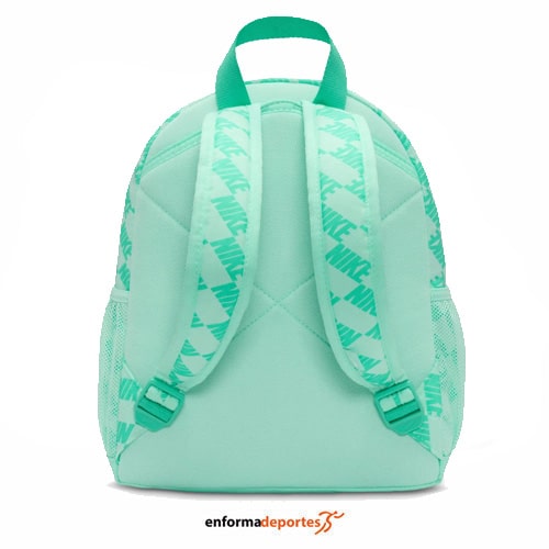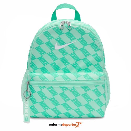 Mochila junior NIKE BRASILIA JDI, con capacidad de 11 litros, fabricada en tejido 100% poliéster, con compartimento principal con cremallera y el bolsillo frontal, con dos bolsillos laterales de malla, de dimensiones 25,5 cm de ancho x 33 cm de alto x 12,5 cm de profundidad (aprox.)