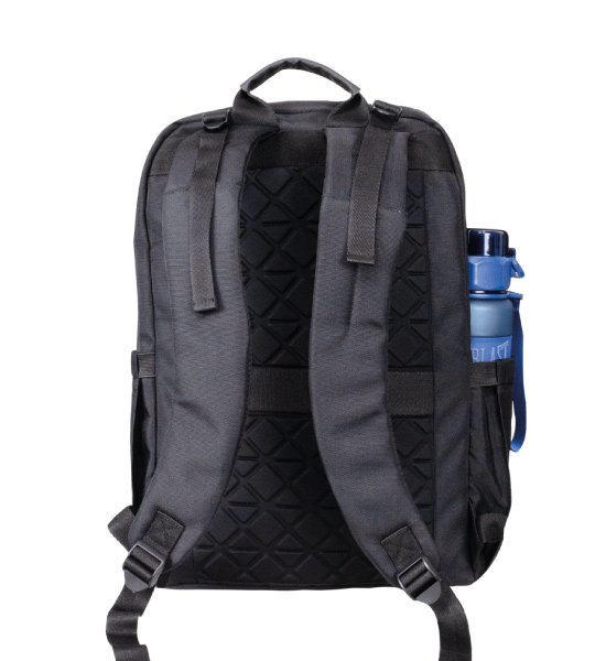 Los bolsillos laterales para la botella de agua y el paraguas compacto.