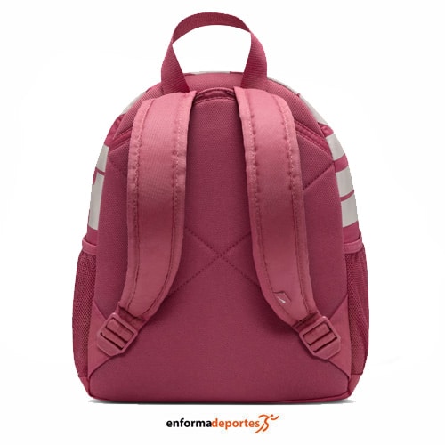 Mochila NIKE BRASILIA JDI MINI, con capacidad para 11 litros, con bolsillos laterales tienen capacidad para una botella de agua u otros artículos esenciales pequeños, correas acolchadas para los hombros son ajustables para un ajuste cómodo. Dimensiones: 33 cm alto x 25 cm ancho x 13 cm profundidad (aprox.)
