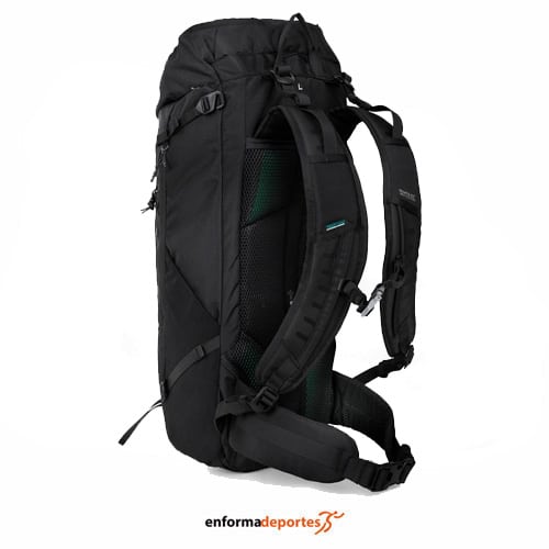 Mochila REGATTA BLACKFELL IV 45L, con capacidad para 45 litros, fabricada en tejido Poliamida 210d antidesgarro ligera y de alta tenacidad, poliéster ligero 600D resistente a la abrasión, con sistema de transporte ergonómico y ventilado ERGOVENT, sistema de transporte ajustable ADJUSTFIT para un ajuste personalizado, rendimiento TECFOAM, con canales de ventilación STREAMAIR, tejido ISOFLEX para ampliar el almacenamiento, tejido malla de aire de alto rendimiento ISOVENT, sistema de transporte Adjustfit permite ajustar la longitud de la espalda de 50 cm a 58 cm, con acabado repelente al agua duradero y libre de PFC, con bolsillo interno para almacenamiento de hidratación y soporte para tubo de bebida, cremallera de acceso frontal, con cinturón de cadera acolchado ajustable, con correas de hombro diseñadas ergonómicamente, correas de elevación de carga y correas de pecho ajustable, con funda de lluvia desmontable, detalle reflectante, y presillas para bastones de trekking.