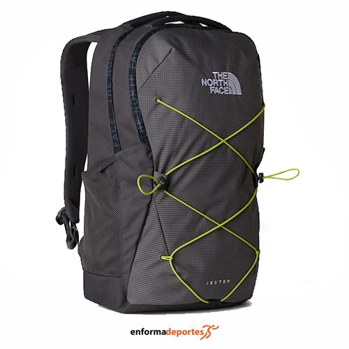 Mochila THE NORTH FACE JESTER, con capacidad para 27,5 litros; confeccionada en tejido de poliéster, con sistema de suspensión FlexVent, con correas de hombro moldeadas; un cómodo panel trasero acolchado; y panel lumbar, con dos asas superiores de cincha, con funda acolchada para computadora portátil protege la computadora portátil de golpes y caídas, con compartimento principal, con dos bolsillos externos para botellas de agua, sistema elástico frontal actualizado y elegante para almacenamiento adicional, con correa de esternón. Dimensiones: 27.9 cm X 21 cm X 46.1 cm