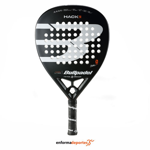 Pala BULLPADEL HACK JR, adaptada a jugadores junior, perfil de 35 mm, balance medio, con forma de diamante, fabricada en su núcleo exterior de fibra de vidrio Polyglass y el núcleo interior de goma Evalastic, potencia/control 95/95.