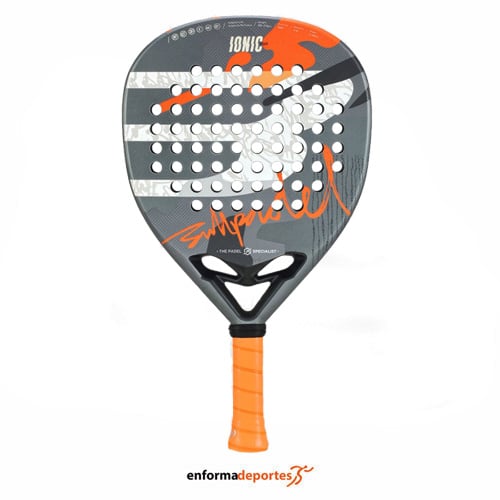 Pala BULLPADEL IONIC POWER, es una pala muy manejable y eficaz en pista. Es una pala de pádel para jugadores de nivel Medio/Avanzado, con perfil de 38mm, balance alto, con forma de diamante, núcleo exterior de Graphite, núcleo interior multieva, con potencia/control: 90/80.