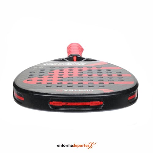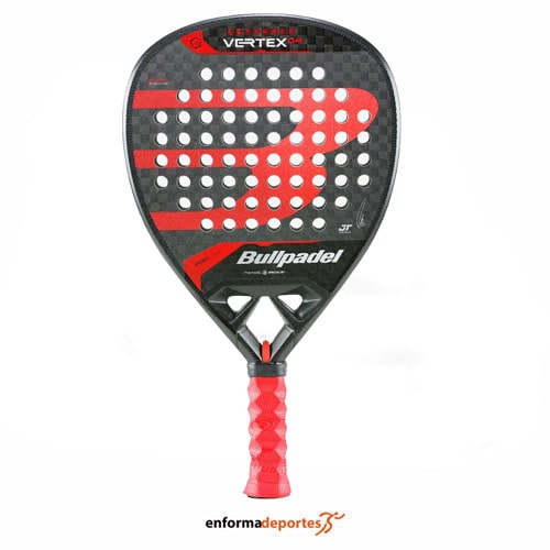 Pala BULLPADEL VERTEX 04 24, con forma de diamante, de máxima potencia, con superficie rugosa Top Spin. Incorpora dos conceptos nuevos en el marco, el sistema CURVAKTIV, estructura retorcida nos proporciona resistencia adicional a las torsiones. Gracias al giro de sus caras, nos permite introducir una sección en el costado de la pala variable. Conseguimos introducir una sección más pequeña que la del marco de la vertex03 aumentando la rigidez, pero además conseguimos que vaya ensanchándose la sección a lo largo de su longitud consiguiendo una transmisión más uniforme de las tensiones por toda la pala. Esta mejor distribución de las vibraciones y esfuerzos está apoyada también en la unión del CURVAKTIV con el AIR POWER que es la evolución natural del sistema Air React Channel. Es un canal que generamos a través de una pieza hueca en el costado inferior de la pala. Esta pieza hueca trabaja mejor que si fuera una pieza maciza ya que al estar formada por menos material es menos propensa a la deformación, haciendo la estructura más fuerte. El núcleo externo se compone de carbono Xtend Carbon 12K, su núcleo interno de la nueva goma MultiEva y su marco CarbonTube de fibra de carbono 100%. Cuenta con el sistema de placas de peso CustomWeight permitiendo modificar el balance de la pala en función de las necesidades de cada jugador. Dispone del sistema Vibradrive para absorción de vibraciones. Además, incorpora el grip Hesacore, el cual reduce el esfuerzo, las vibraciones y la probabilidad de lesiones.