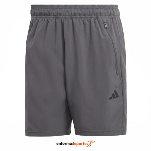 Pantalón corto hombre ADIDAS TRAIN ESSENTIALS WOVEN, de corte clásico, confeccionado en tejido 100% poliéster con tecnología Aeroready, con cintura elástica conn cordón interior y bolsillos frontales con cremallera.