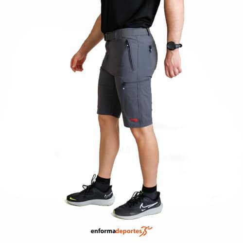 Pantalón corto hombre SPHERE PRO KOLA, confeccionada en tejido 95% nailon – 5% elastano. 145 g/m². Tejido tratado con DWR repelente al agua, de secado rápido, transpirable y bielástico, con cintura semielástica, cierre de botón, cinturón ajustable, 6 bolsillos con cremalleras ocultas, logotipo bordado.