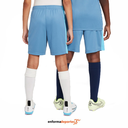 Pantalón corto junior NIKE DRI-FIT ACADEMY 23, confeccionado en tejido Knit suave cuenta con tecnología Dri-FIT para mantener la frescura y la comodidad, con bolsillos laterales, cintura con cordón ajustable, con paneles laterales de malla aumentan la transpirabilidad para mantener la frescura.