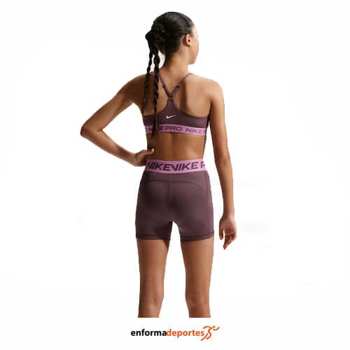 Malla corta junior NIKE PRO, confeccionado en tejido con tecnología Dri-fit, que capilariza el sudor, con diseño ajustado en color negro que se ajusta a la forma anatómica del jugadora, cintura elástica muy suave que ofrece una compresión leve, con zona lateral de malla para una buena transpiración.