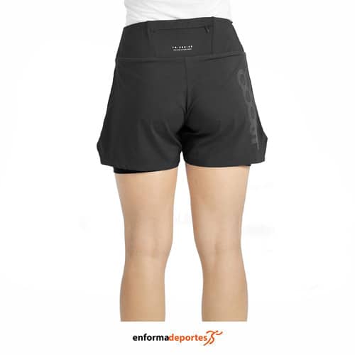 Pantalón corto mujer +8000 GROA, confeccionado en tejido bi-elástico 92% polIéster-8% elastán, con cintura elástica ajustable con cordón, bolsillo posterior con cremallera, con pieza de la entrepierna en rejilla elástica que favorece la transpiración y malla interior