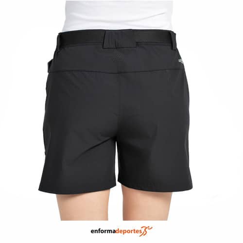 Pantalón corto mujer +8000 VICIA, confeccionado en tejido con textura de ripstop 6, composición de nylon con elastán, calidad 4Flex elástico en 4 direcciones, con cinturilla de goma con cinturón personalizada, bolsillos laterales de fácil acceso, perforado láser en espalda para ventilación, con largo ajustable mediante sistema roll-up.