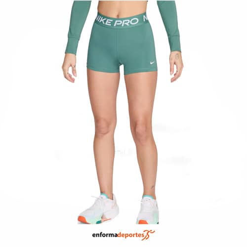 Malla corta mujer NIKE PRO 3″, de corte ajustado, confeccionada con tejido con tecnología Nike Dri-FIT mantiene la transpirabilidad, la comodidad y la concentración, con pretina ancha y elástica de tiro medio brinda soporte alrededor del torso.