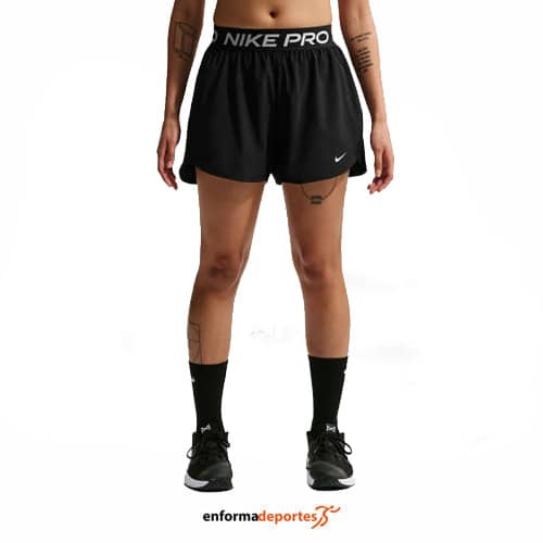 Pantalón corto mujer NIKE PRO DRI-FIT, ligeros y transpirables, confeccionados en tejido con tecnología Nike Dri-FIT que absorbe el sudor de la piel para acelerar su evaporación, lo que ayuda a mantener la transpirabilidad y la comodidad, tela suave, ligera y elástica, se seca rápidamente, con pretina elástica de jacquard suave se asienta cómodamente en la piel, con dobladillo curveado y forro de ropa interior.