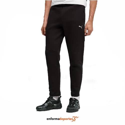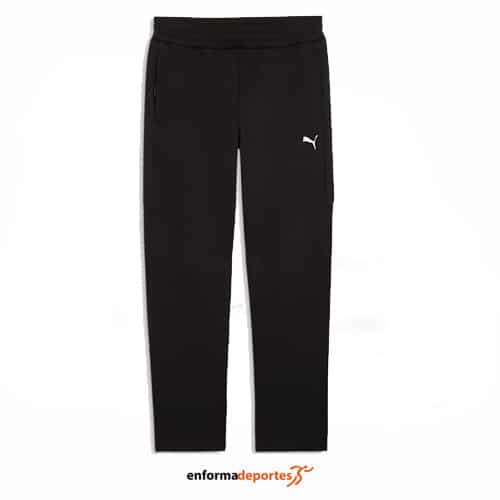 Pantalón hombre PUMA EVOSTRIPE, de corte y ajuste regular, confeccionado en tejido algodón de punto doble, con cintura elástica con cordón ajustable y bolsillos laterales con cremallera.