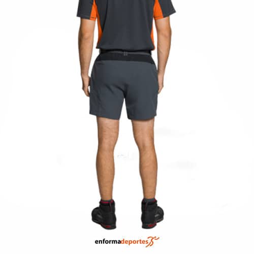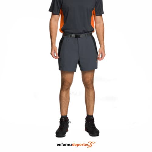 Pantalón corto hombre TRANGO ALLO DF, confeccionado en tejido de Nylon reciclado free4move para trekking y montaña, con cintura con elástico y cinturón, bragueta con cremallera y tapeta, con botón de gancho, bolsillos laterales con cremallera y media tapeta, bolsillo trasero con cremallera y media tapeta, transpirable, repelente al agua libre de PFC, tejido bielástico, protección UV +50. Diseño técnico y robusto.