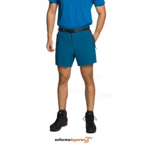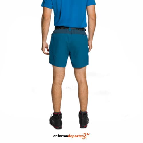 Pantalón corto hombre TRANGO ALLO DF, confeccionado en tejido de Nylon reciclado free4move para trekking y montaña, con cintura con elástico y cinturón, bragueta con cremallera y tapeta, con botón de gancho, bolsillos laterales con cremallera y media tapeta, bolsillo trasero con cremallera y media tapeta, transpirable, repelente al agua libre de PFC, tejido bielástico, protección UV +50. Diseño técnico y robusto.