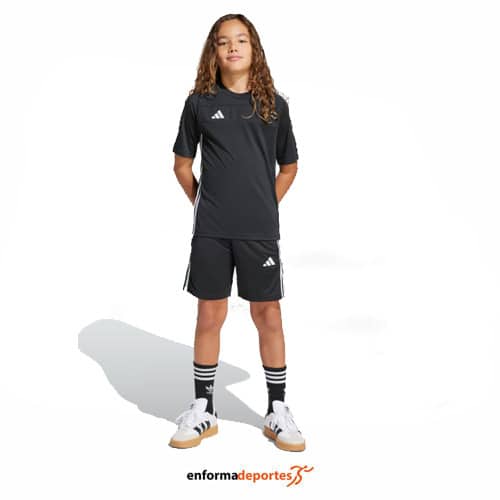 Pantalón junior ADIDAS TIRO, confeccionado en tejido 100% poliéster, de corte clásico, con cintura elástica con cordoón ajustable y bolsillos con cremallera en la costura lateral.