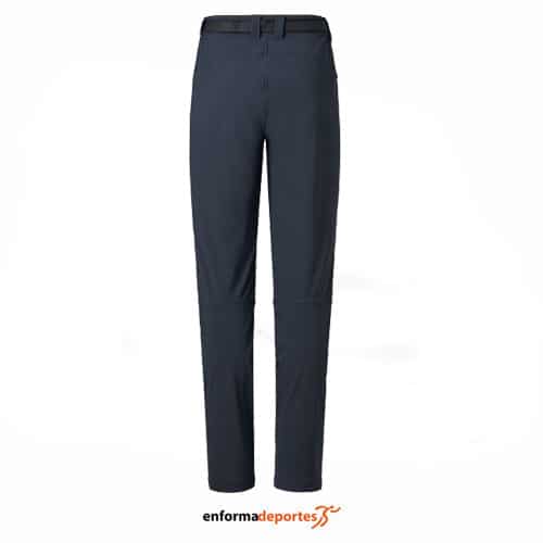 Pantalón mujer TERNUA DARKTONE, técnico confeccionado con tejido de polyamida elástica gruesa SHELLSTRETCH y tiene alta resistencia a la abrasión, con patrón ergonómico y la elasticidad del tejido ofrecen un óptimo comfort y libertad de movimiento, interior está de tejido cepillado para mayor calidez, con rodillas articuladas, cintura mixta (elástica + cinturón), bajos ajustables con tanca y 2 bolsillos con cremallera frontales, incluye tratamiento de repelencia al agua (DWR) libre de tóxicos PFC’s y su tejido incluye certificación BLUESIGN(R).