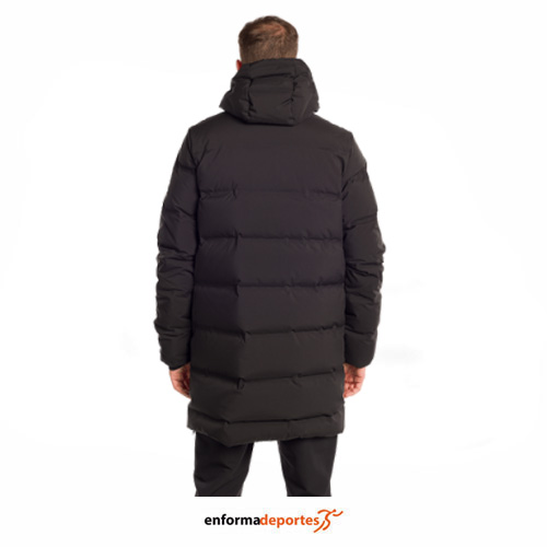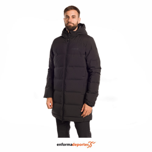 Parka hombre TRANGO LINCOLN, confeccionada en tejido poliéster downproof resistente al agua con relleno de pluma RDS (170 g), con capucha fija, ceñidor facial y colgador en cuello. Con cremallera longitudinal con doble cursor, puños elásticos y bolsillos térmicos con cremallera. Repelente al agua libre de PFC.