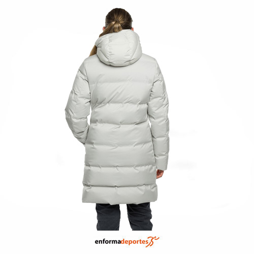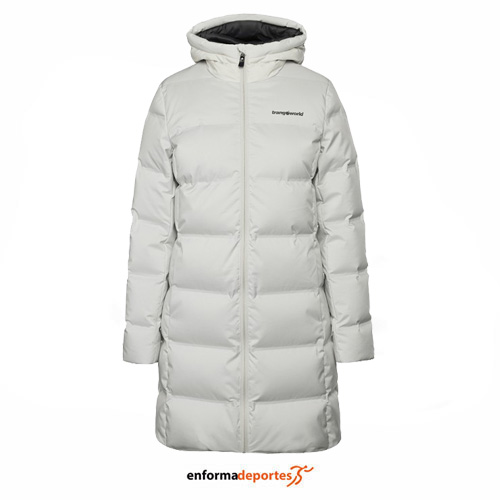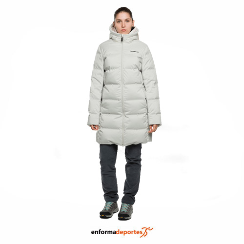 Parka mujer TRANGO GALWAY, confeccionado en tejido poliester downprood, repelente al agua libre de PFC, con relleno de pluma RDS (170 g), con capucha fija, ceñidor facial, colgador en cuello, manga sentada, cremallera longitudinal de doble cursor, puños ajustados con lycra, bolsillo con forro térmico y bolsillos con cremallera.