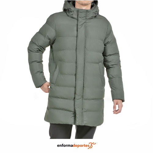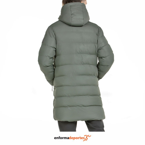 Plumas hombre +8000 ESLO, confeccionado en tejido exterior en poliéster 50D, relleno calidad Pumpfiber; aislante, resistente al agua y ultraligero, con cremallera central de doble cursor cubierta por tapeta, con bolsillos laterales con cremallera, capucha desmontable y puños dobles con puño elástico interior.