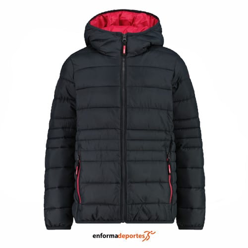 Plumas junior CAMPAGNOLO FIX HOOD, de plumón con capucha, con acolchado con tecnología Feel Warm Flock garantiza un excelente equilibrio entre aislamiento térmico, transpirabilidad e impermeabilidad, a la vez que garantiza libertad de movimiento, tejido exterior repelente al agua protege eficazmente contra la lluvia ligera y la humedad, manteniendo la prenda seca y cómoda, con cierre con cremallera completo, tapeta para barbilla, bolsillos laterales con cremallera y puños y cintura con vivo elástico.