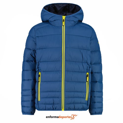 Plumas junior CAMPAGNOLO FIX HOOD, con detalles geométricos pespunteados, acolchada con fibras sintéticas Feel-Warm Flock, que no solo son aislantes y ligeras, sino que también son ligeras, con tratamiento exterior repelente al agua protege de la lluvia. El dobladillo elástico en la capucha, los puños y el bajo de la prenda proporciona un mejor ajuste. Con cierre con cremallera completa y bolsillos laterales con cremallera.