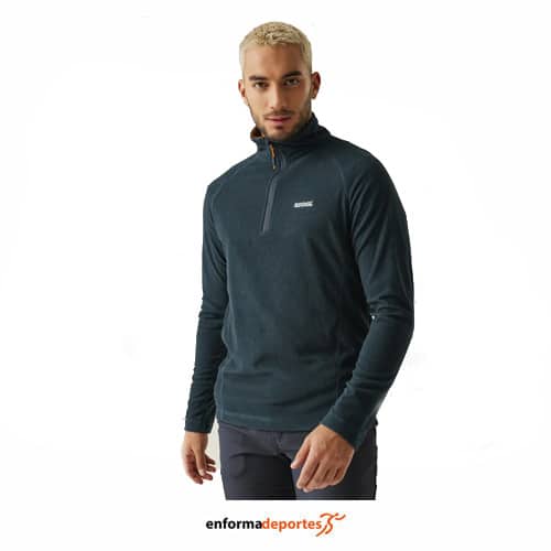 Pullover hombre REGATTA MONTES, capa intermedia ligera y cálida, confeccionado en microfibra, con manga ranglán, con media cremallera para una correcta ventilación.