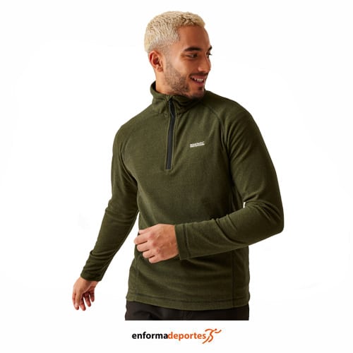 Pullover hombre REGATTA MONTES, capa intermedia ligera y cálida, confeccionado en microfibra, con manga ranglán, con media cremallera para una correcta ventilación.