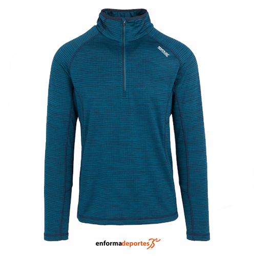 Pullover hombre REGATTA YONDER II, resistente y con una gran capacidad de absorción, tela de forro polar en la espalda proporciona calor y la tela de absorción mueve eficazmente la humedad a la superficie, para que permanezcas fresco, manga larga y con cuello con cremallera. Tejido: 96 % poliéster reciclado, 4 % elastano. Peso: 220 g/m²