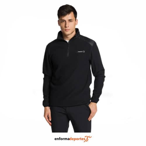 Pullover hombre TRANGO PIERCY, confeccionado con tejido de poliéster reciclado Free4move y refuerzos de nylon en los hombros, combina elasticidad y resistencia para ofrecer libertad de movimiento y durabilidad, con cuello alto con cremallera y el acabado en rib aportan comodidad, mientras que los puños y el bajo ajustados con elástico de punto garantizan un ajuste perfecto.