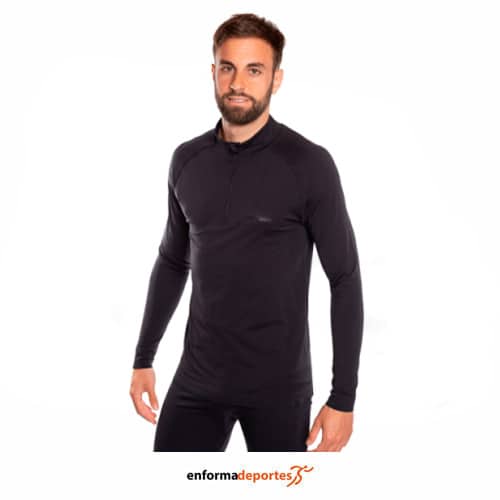 Pullover interior hombre TRANGO LODES, camiseta confeccionada con poliamida Free4move, con una cremallera en el cuello y un diseño de cuello cisne, proporcionando un ajuste cómodo y protección adicional en climas fríos, con mangas largas que aseguran una cobertura completa y su construcción sin costuras evita las fricciones, ofrece un secado rápido, manteniéndote seco y cómodo durante tus actividades.