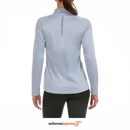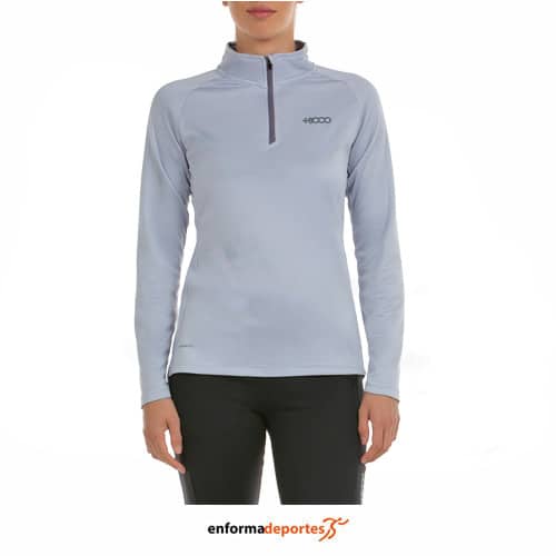 Camiseta mujer +8000 PAGOETA, de media cremallera y cierre autolock, confeccionada en tejido interior con acabado polar cuadradillo, con acabado de secado rápido, tapeta interior alta para proteger la barbilla y puños con abertura para pulgar.