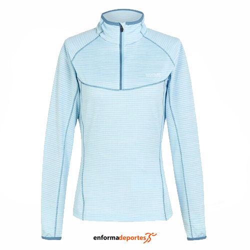 Pullover mujer REGATTA YONDER II, resistente y con una gran capacidad de absorción, tela de forro polar en la espalda proporciona calor y la tela de absorción mueve eficazmente la humedad a la superficie, para que permanezcas fresco, manga larga y con cuello con cremallera. Tejido: 96 % poliéster reciclado, 4 % elastano. Peso: 220 g/m²