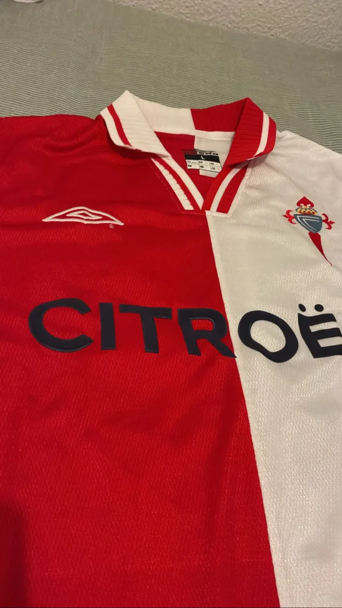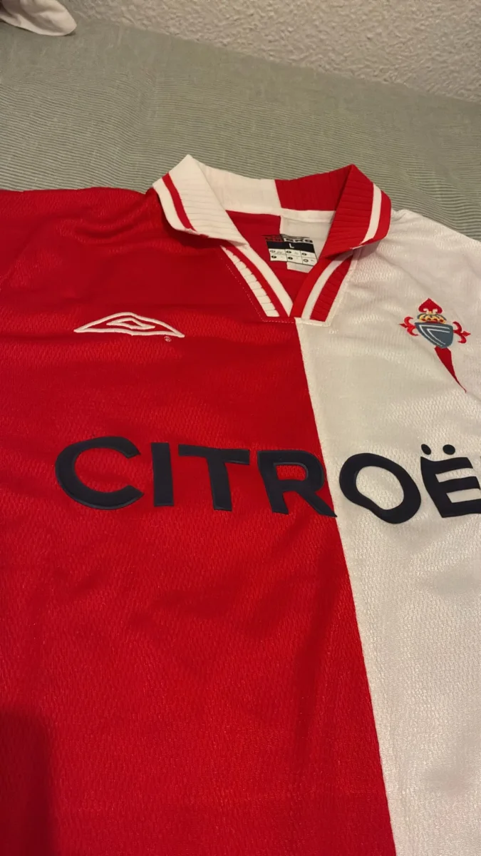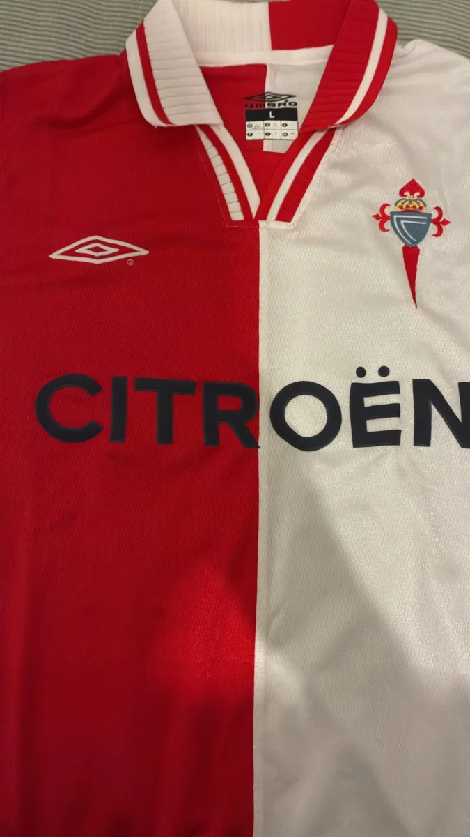 Diseño icónico mitad roja y mitad blanca, con el histórico patrocinio Citroën en el pecho y fabricación Umbro, fiel al modelo que vistió el Celta en sus años dorados en Europa.